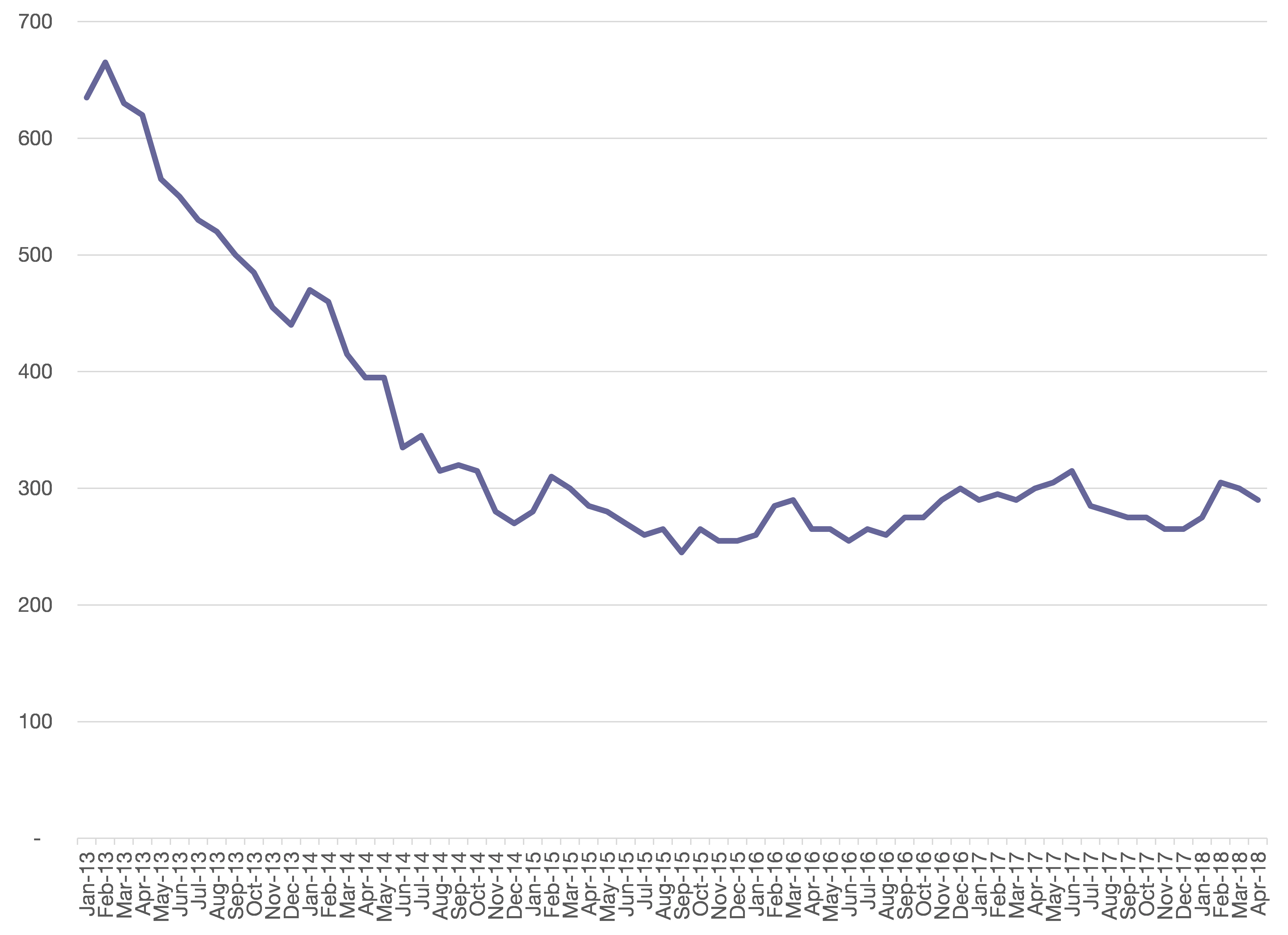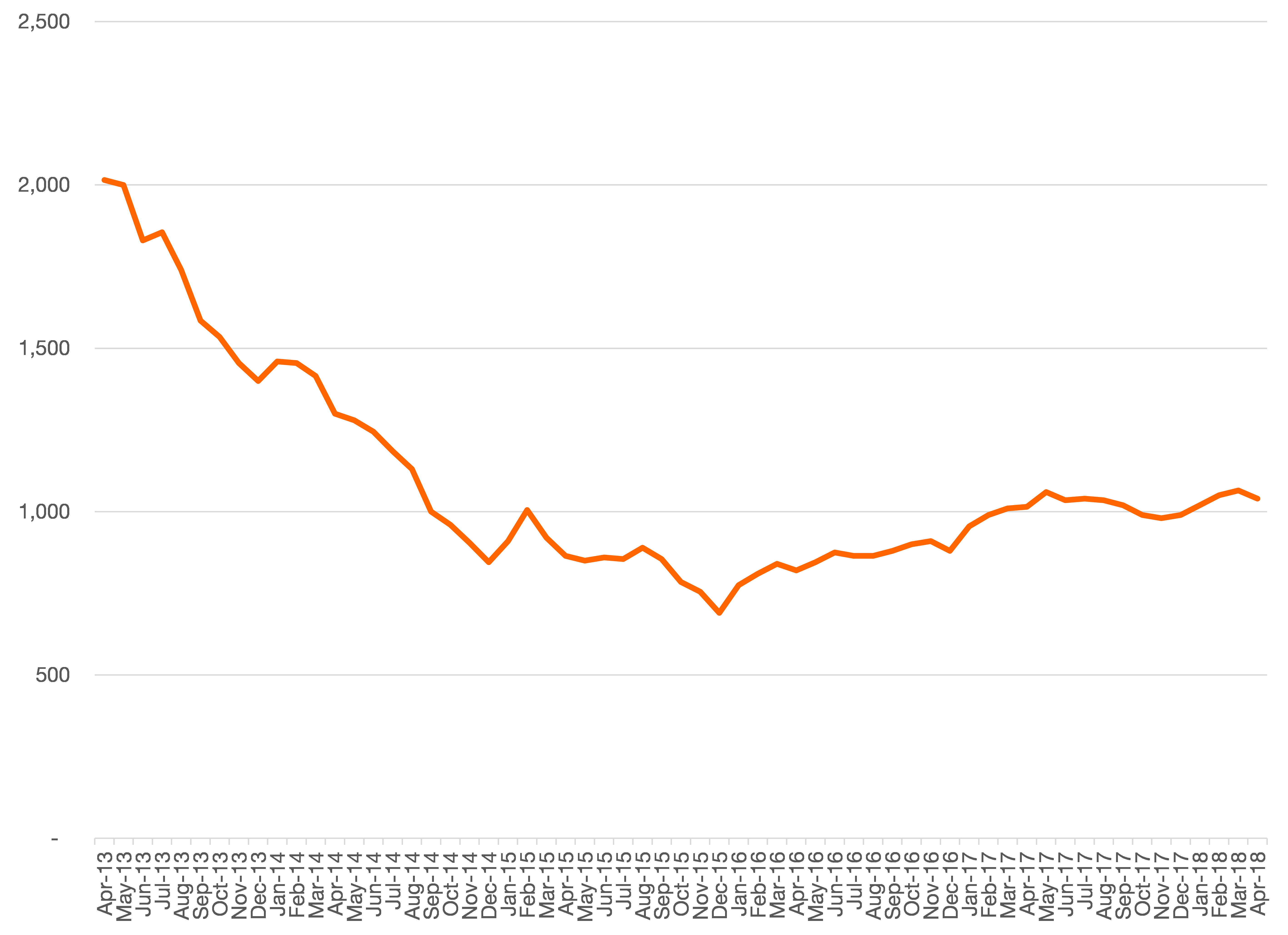 Chart 4: South Bucks’ claimant count over time, to April 2018