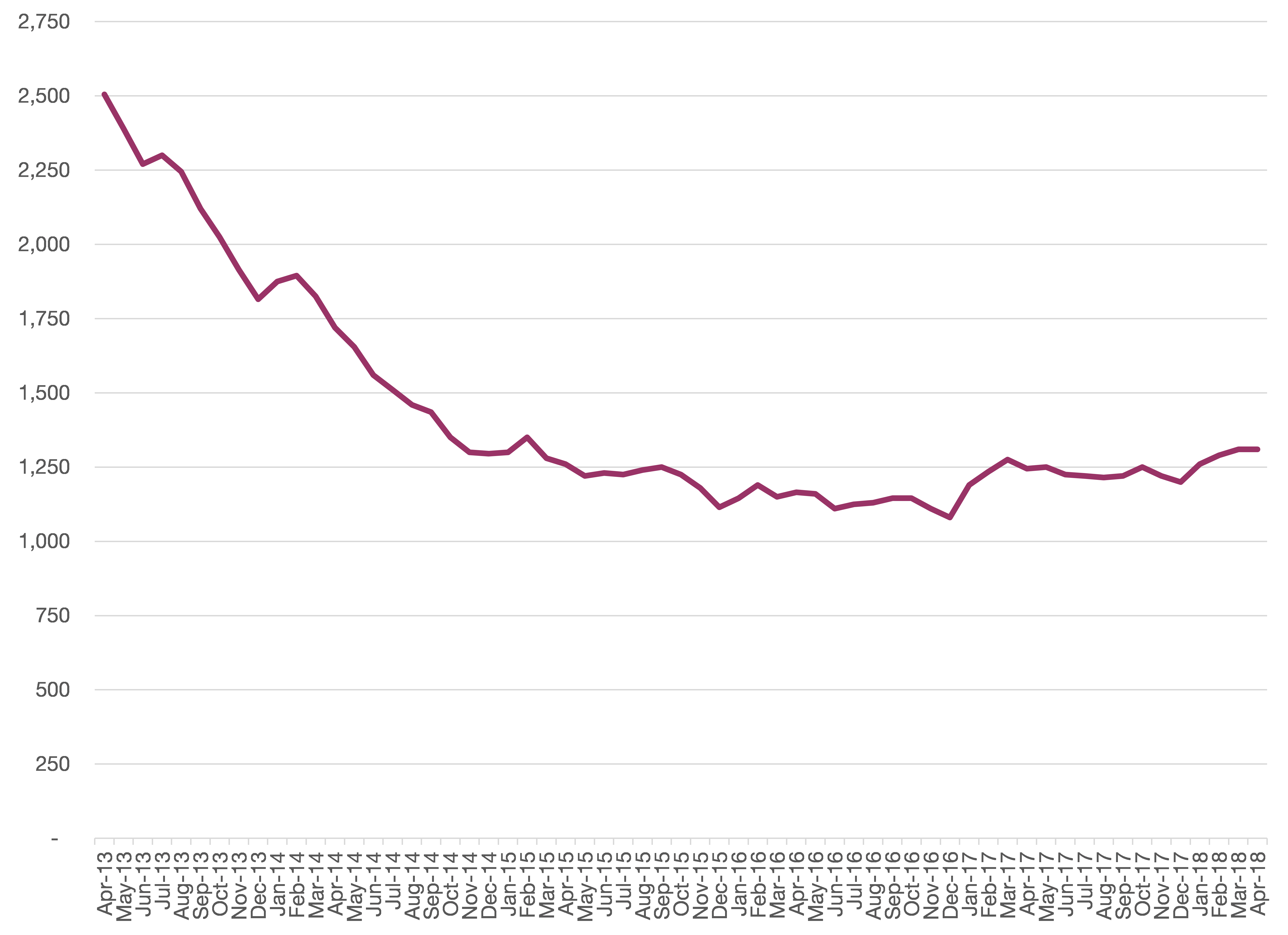 Chart 3: Chiltern’s claimant count over time, to April 2018