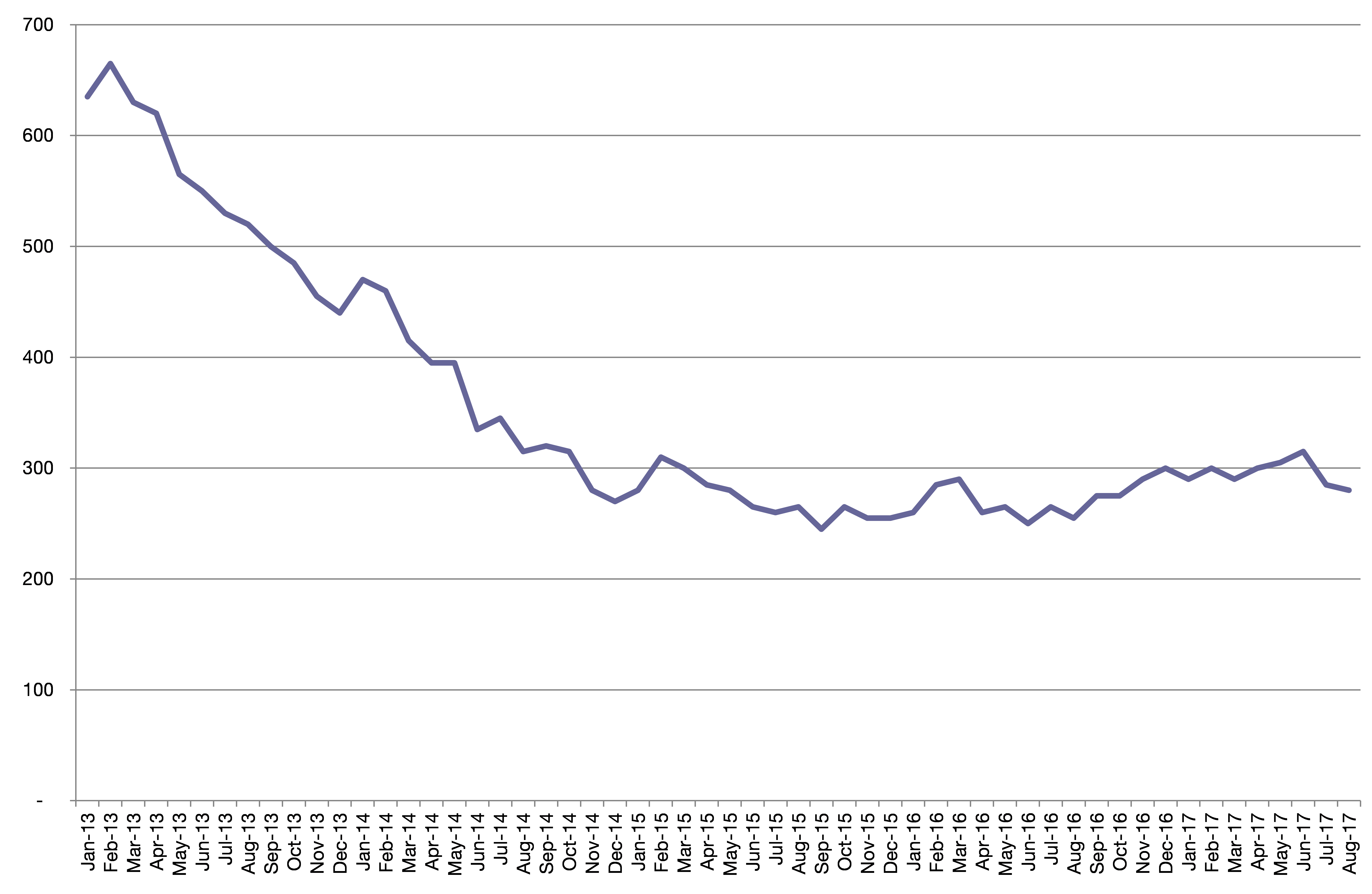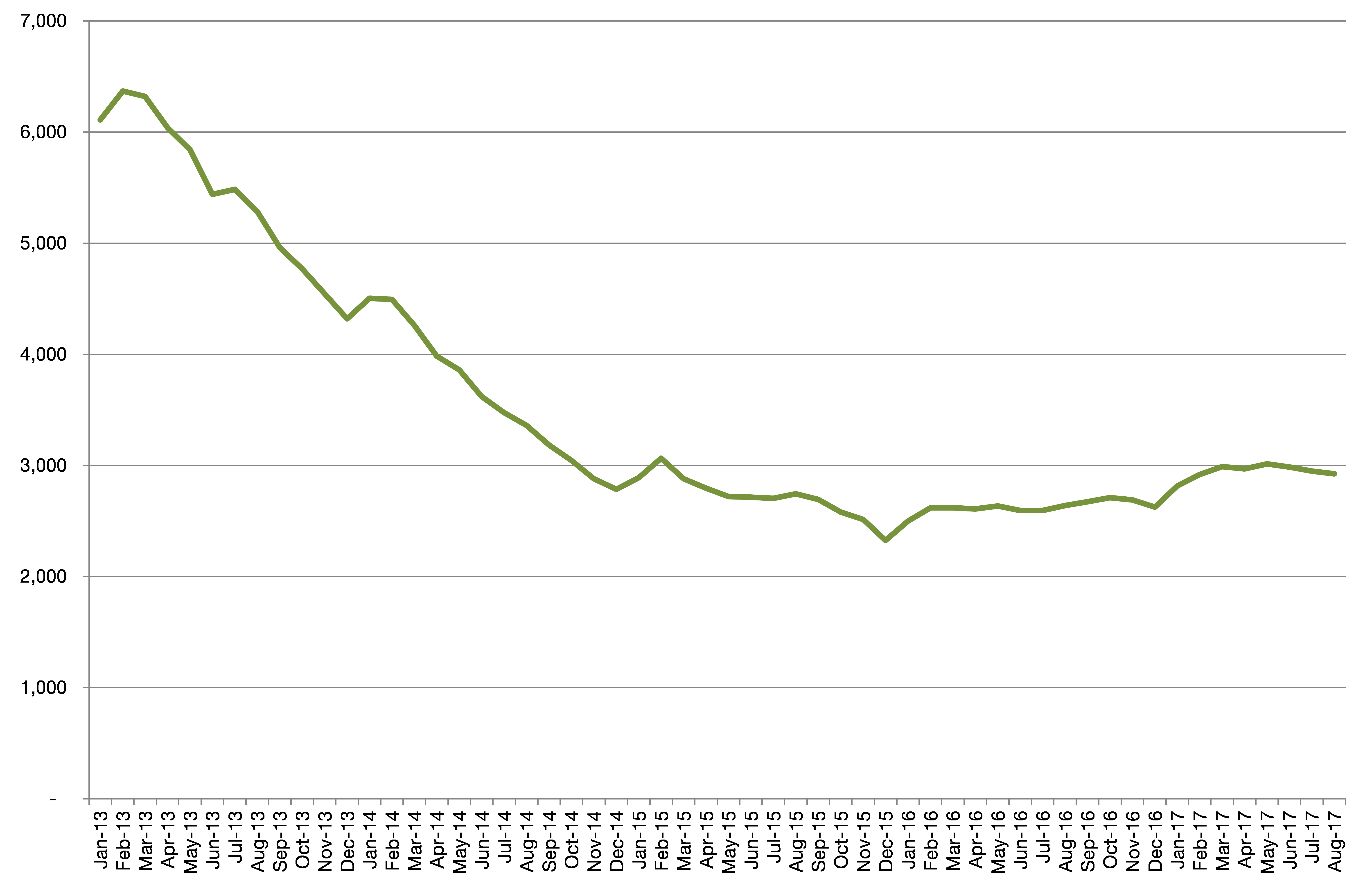 Chart 3: Chiltern’s claimant count over time, to August 2017