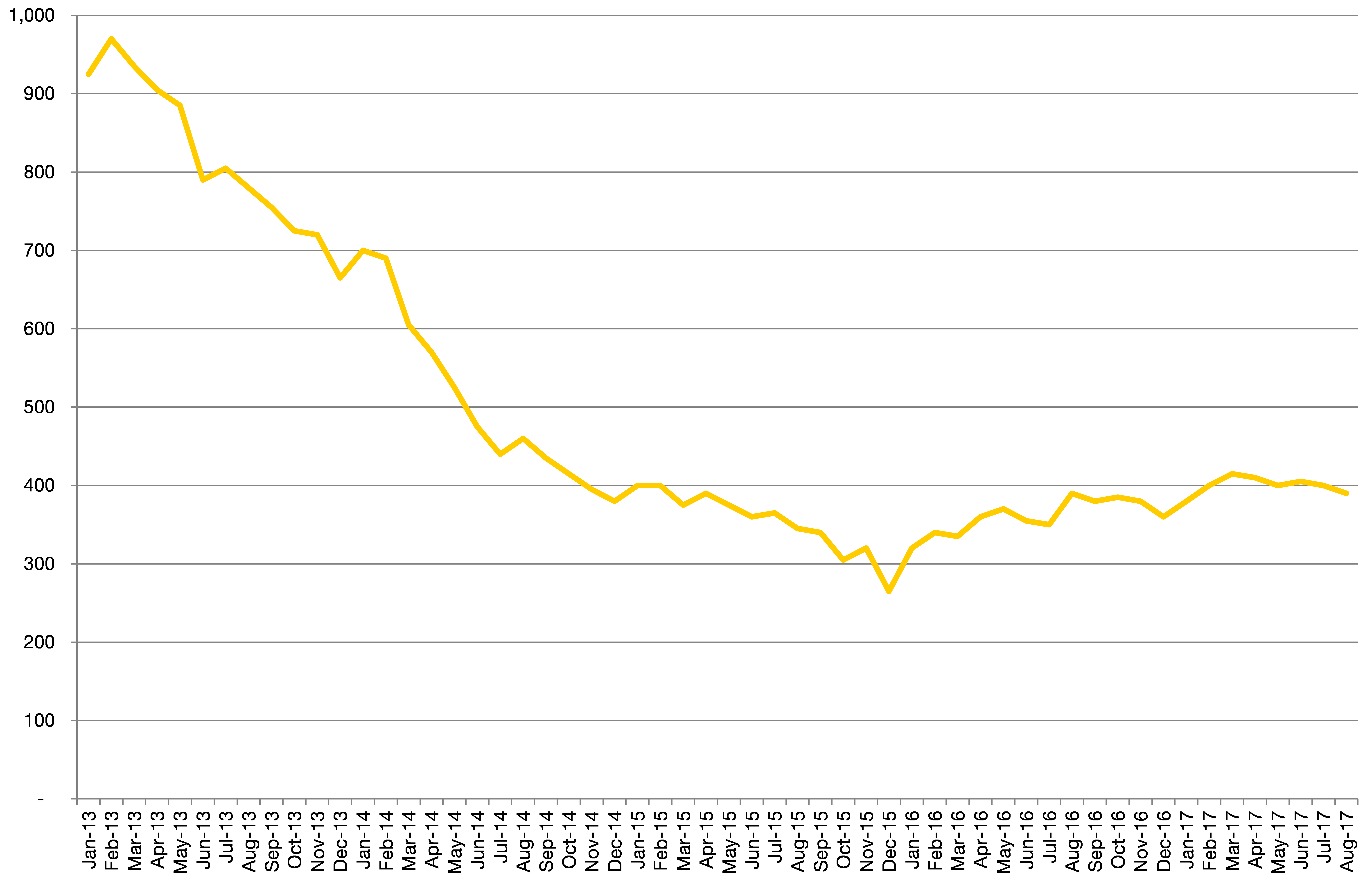 Chart 4: South Bucks’ claimant count over time, to August 2017