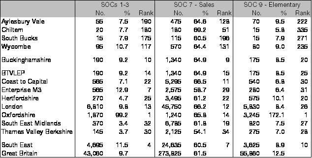 There were 4,715 advertised job openings in Buckinghamshire in August, 83 (1.7 per cent) fewer than in July and 174 (3.6 per cent) fewer than in August 2016. At the national level vacancies have increased by 19.1 per cent over the last year, although at 1.6 Buckinghamshire’s vacancies per claimant remain well above the national rate of 1.1.