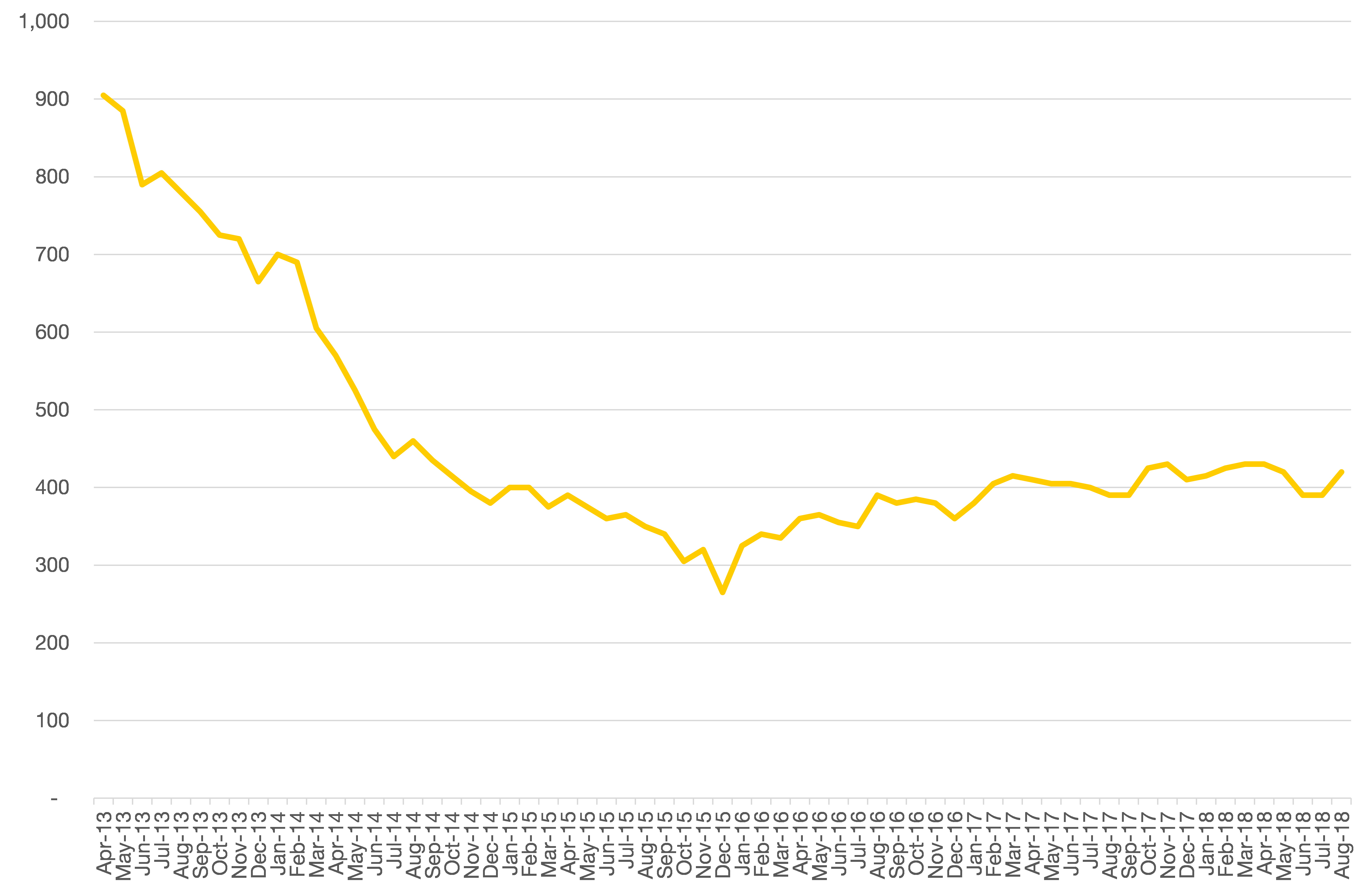 Chart 4: South Bucks’ claimant count over time, to August 2018