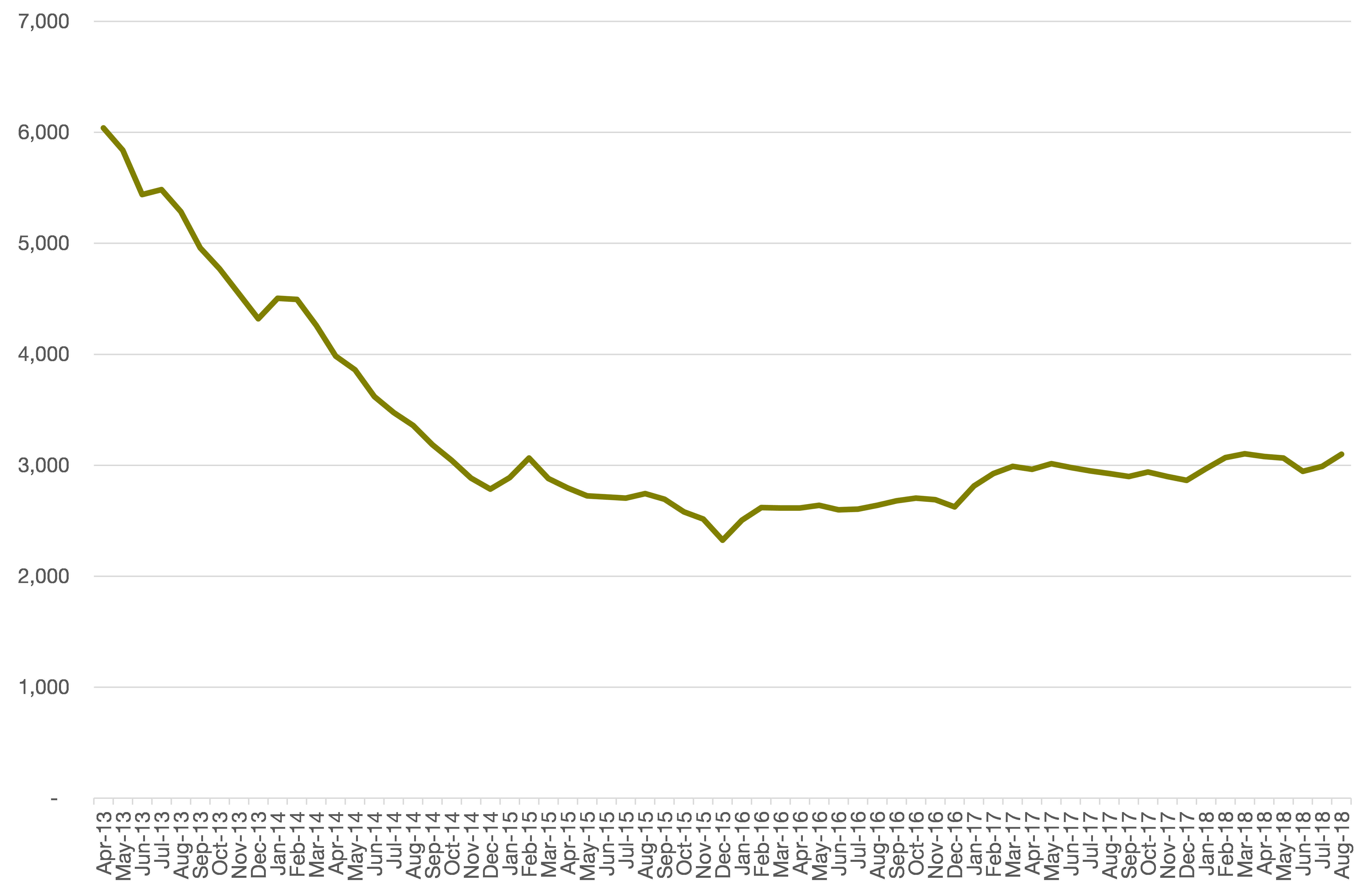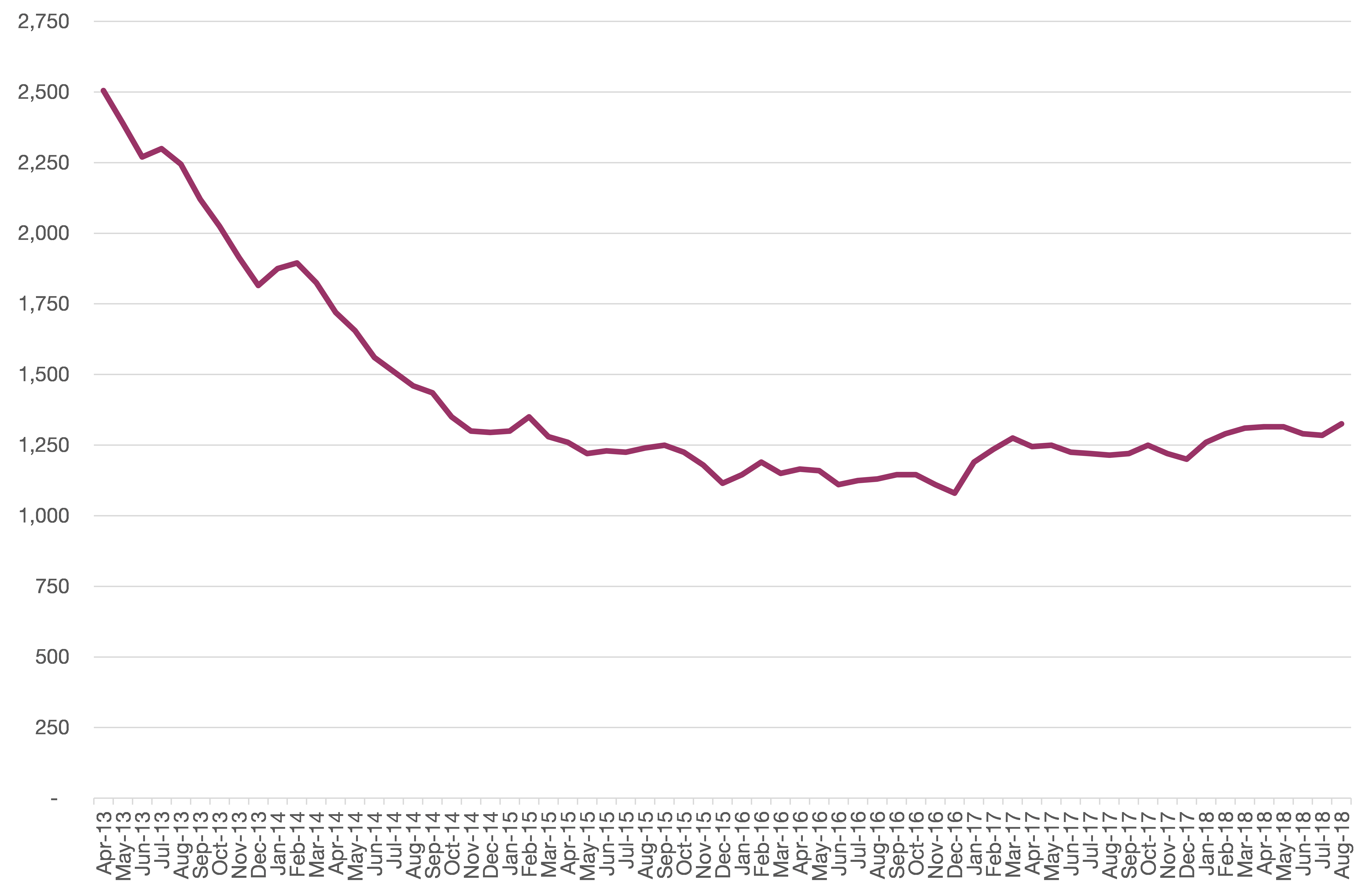 Chart 3: Chiltern’s claimant count over time, to August 2018