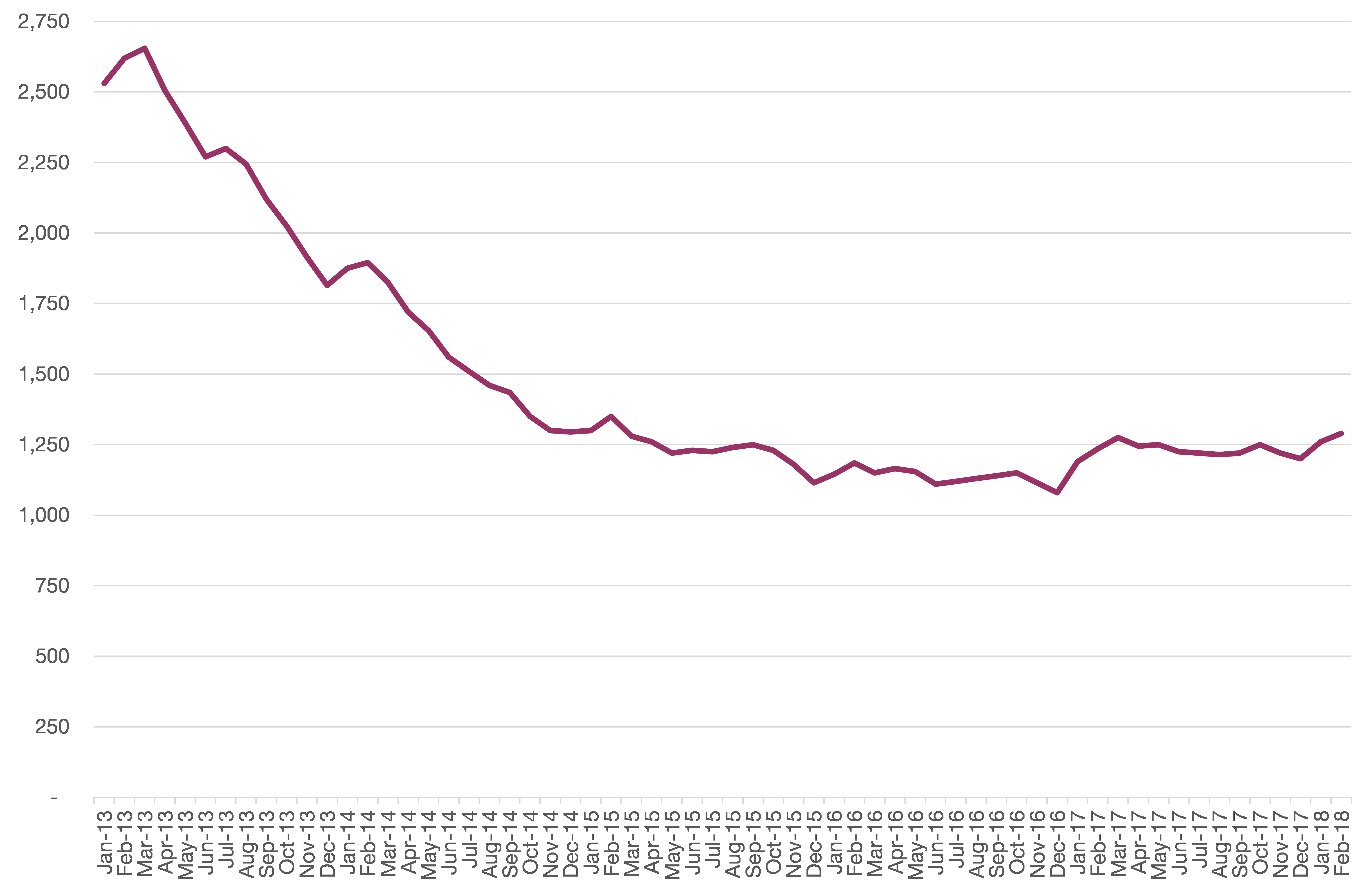Chart 3: Chiltern’s claimant count over time, to February 2018