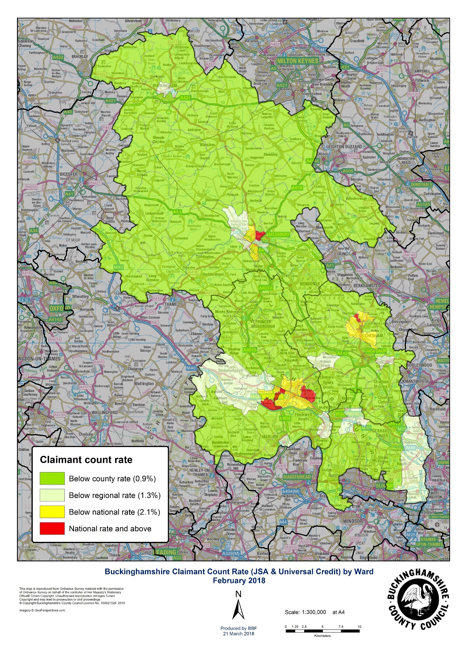 Buckinghamshire’s claimant count rose by 105 in February to stand at 3,075, the highest level since September 2014.