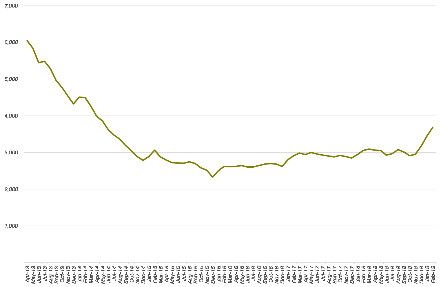 Chart 4: South Bucks’ claimant count over time, to February 2019