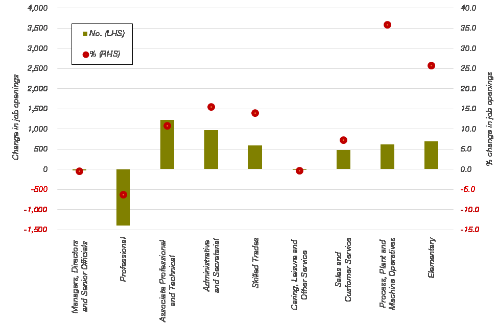 Chart 7: Change in job openings by occupation, years ending February 2018 & 2019