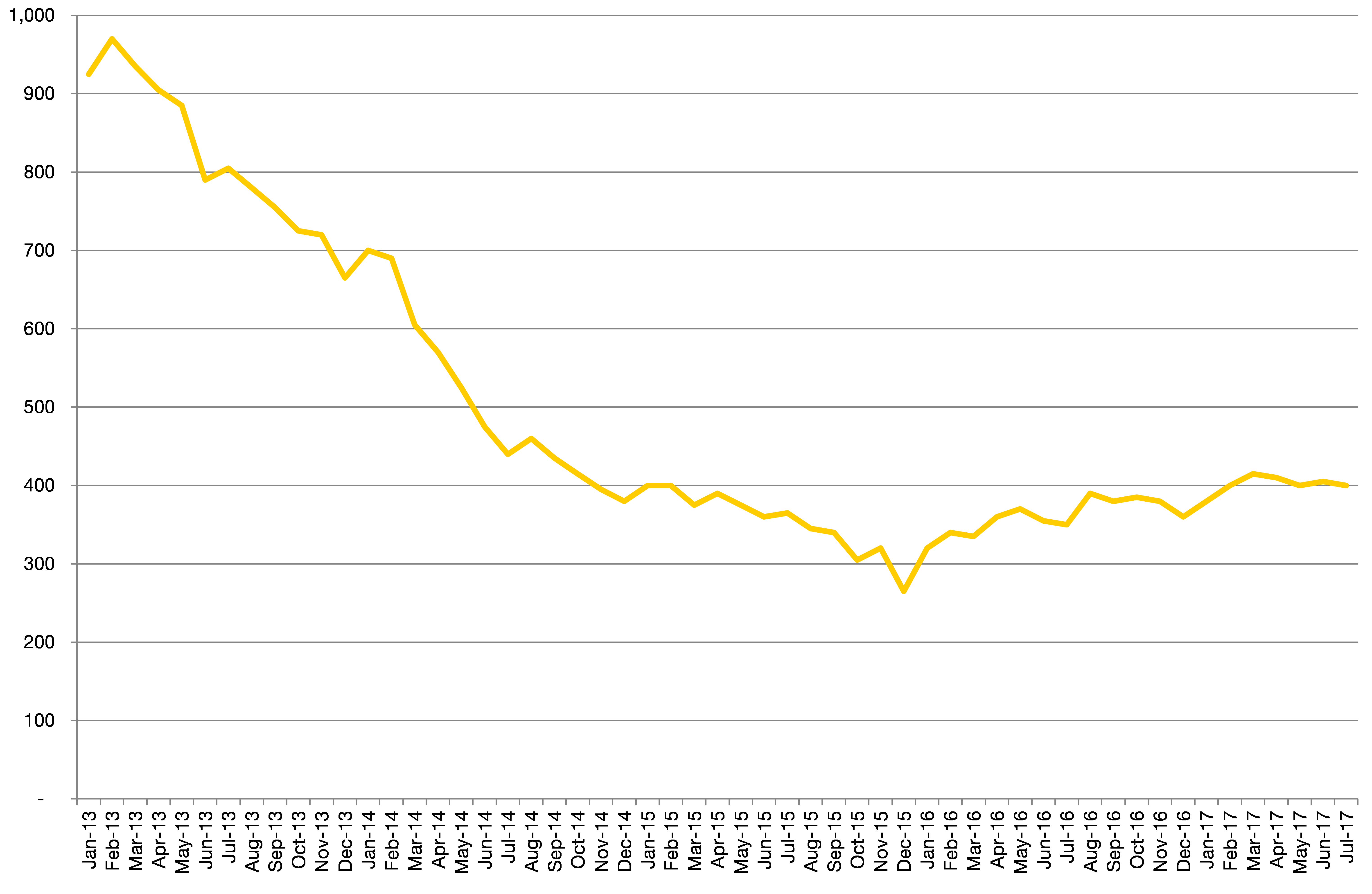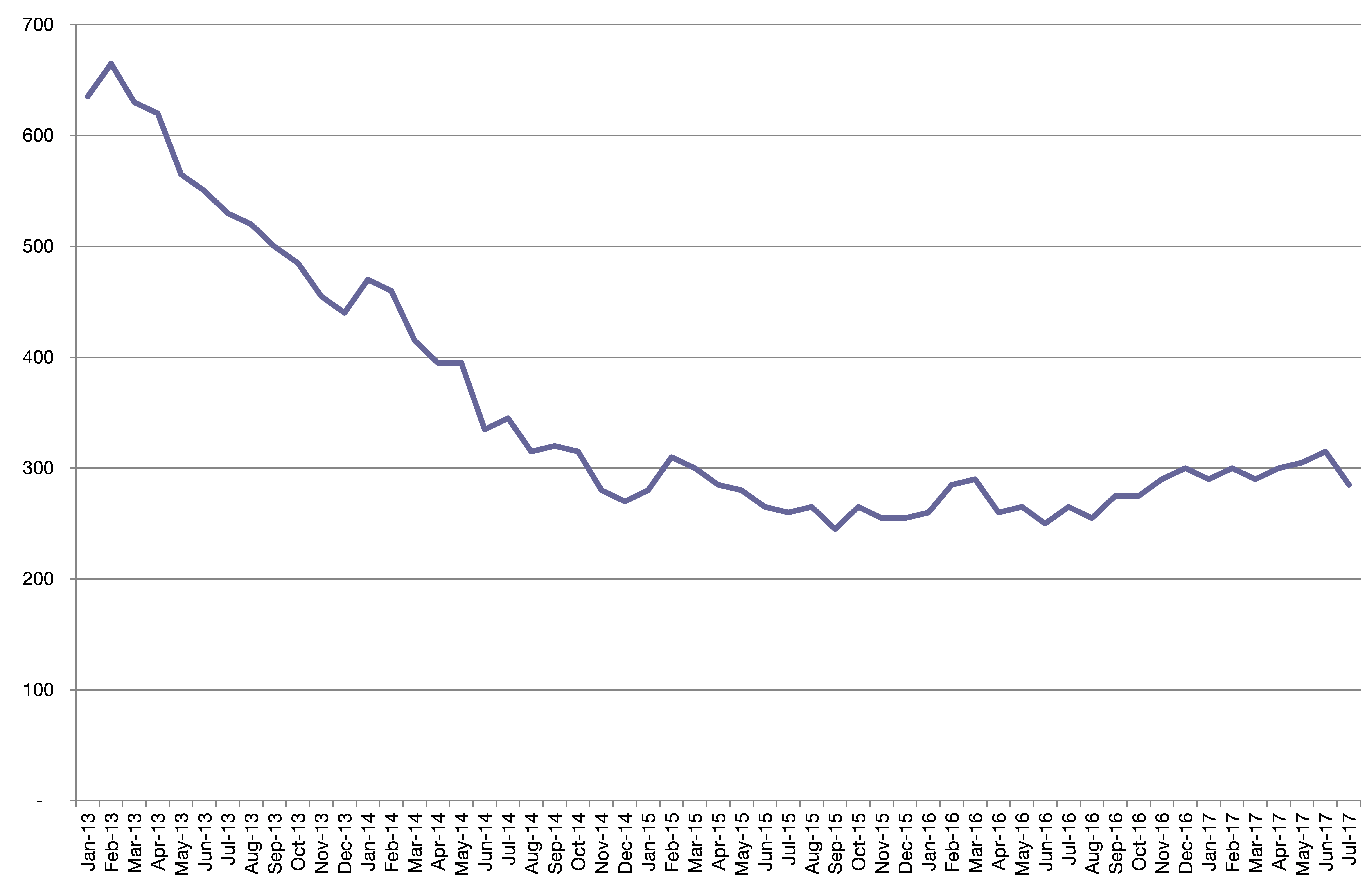Chart 4: South Bucks’ claimant count over time, to July 2017