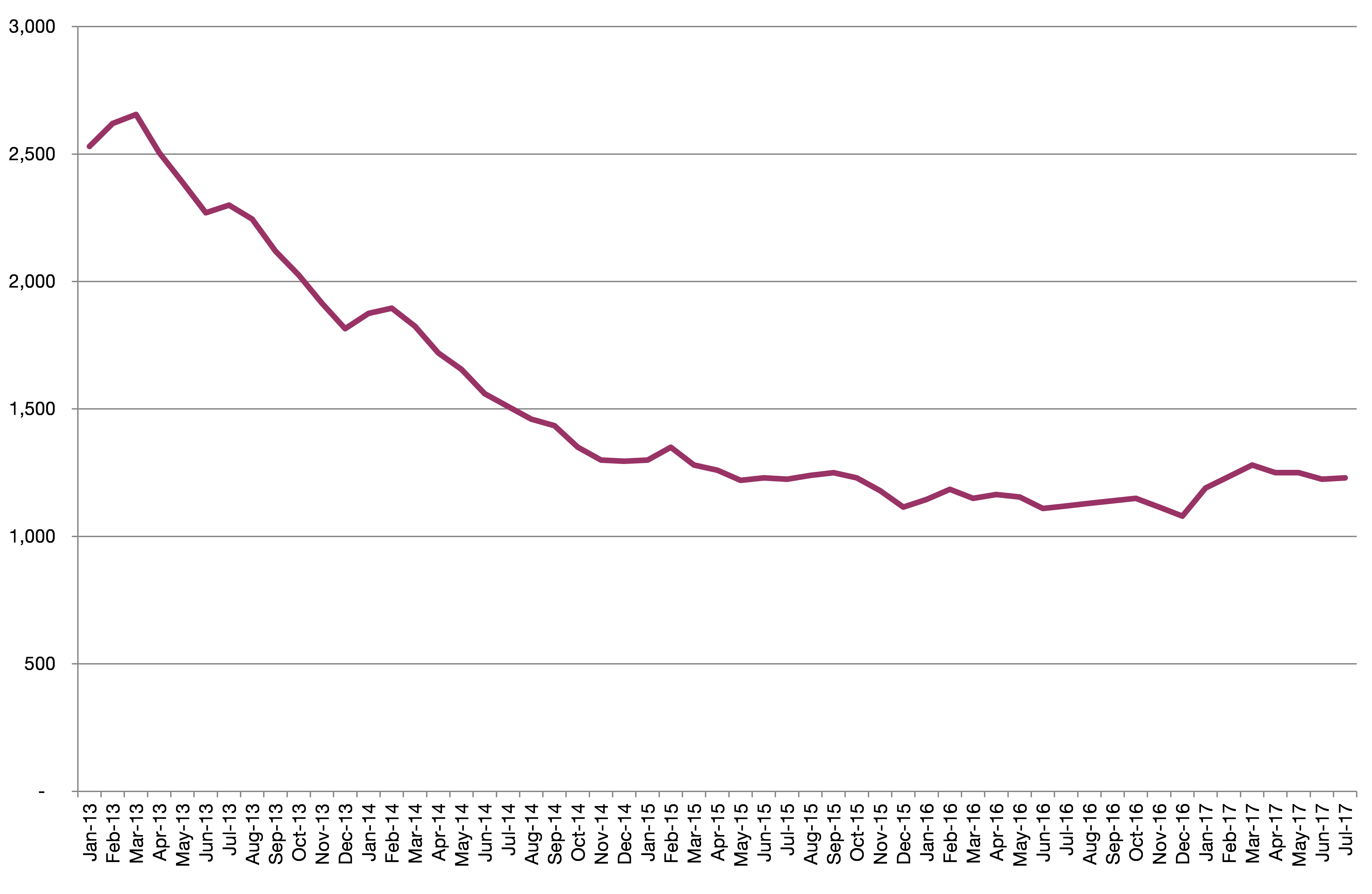 Chart 3: Chiltern’s claimant count over time, to July 2017
