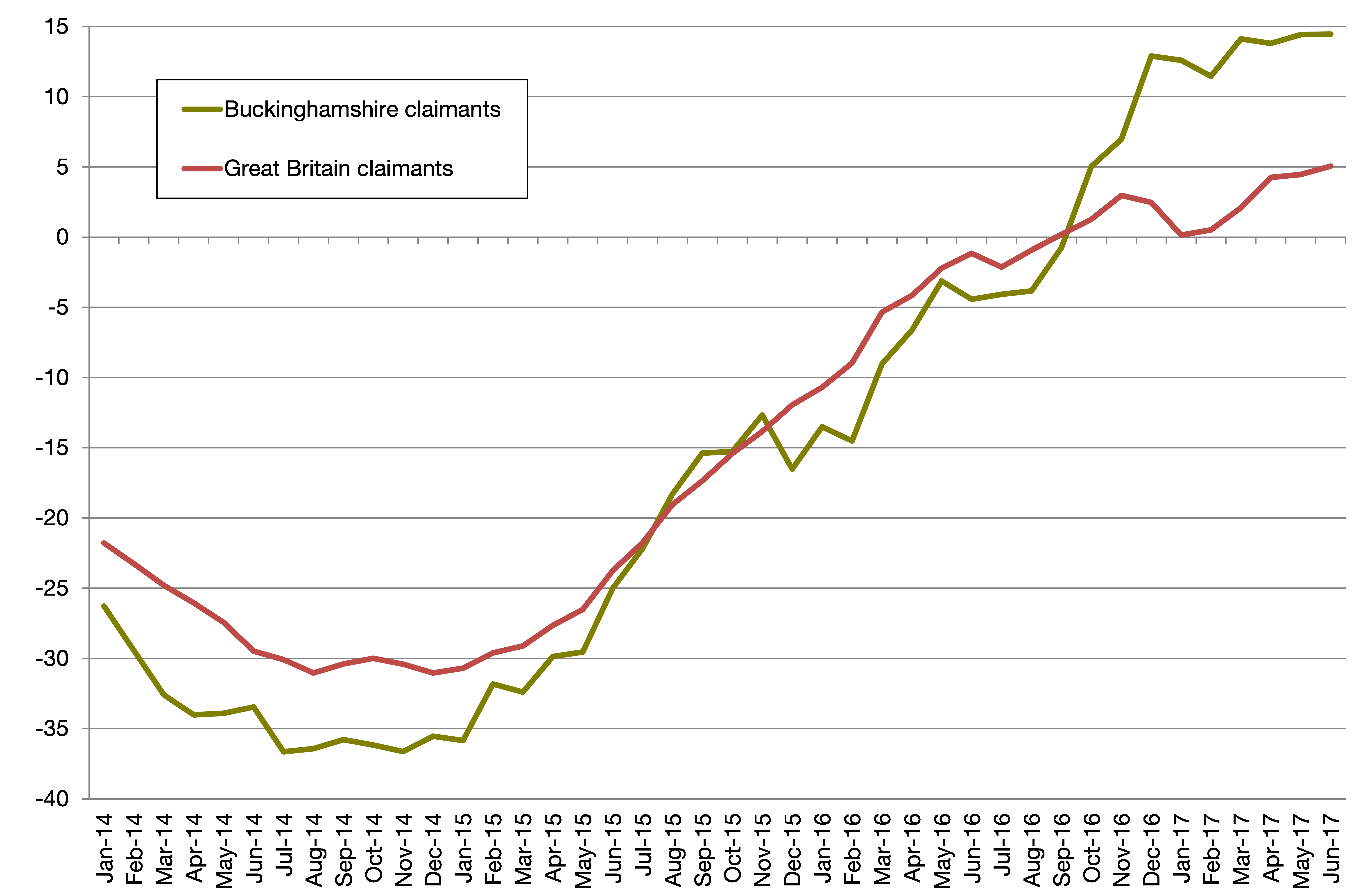 Chart 1: Buckinghamshire’s claimant count over time, to June 2017