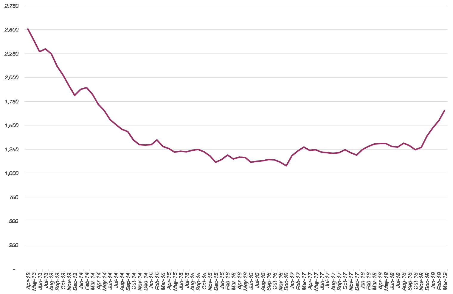 Chart 5: Wycombe’s claimant count over time, to March 2019