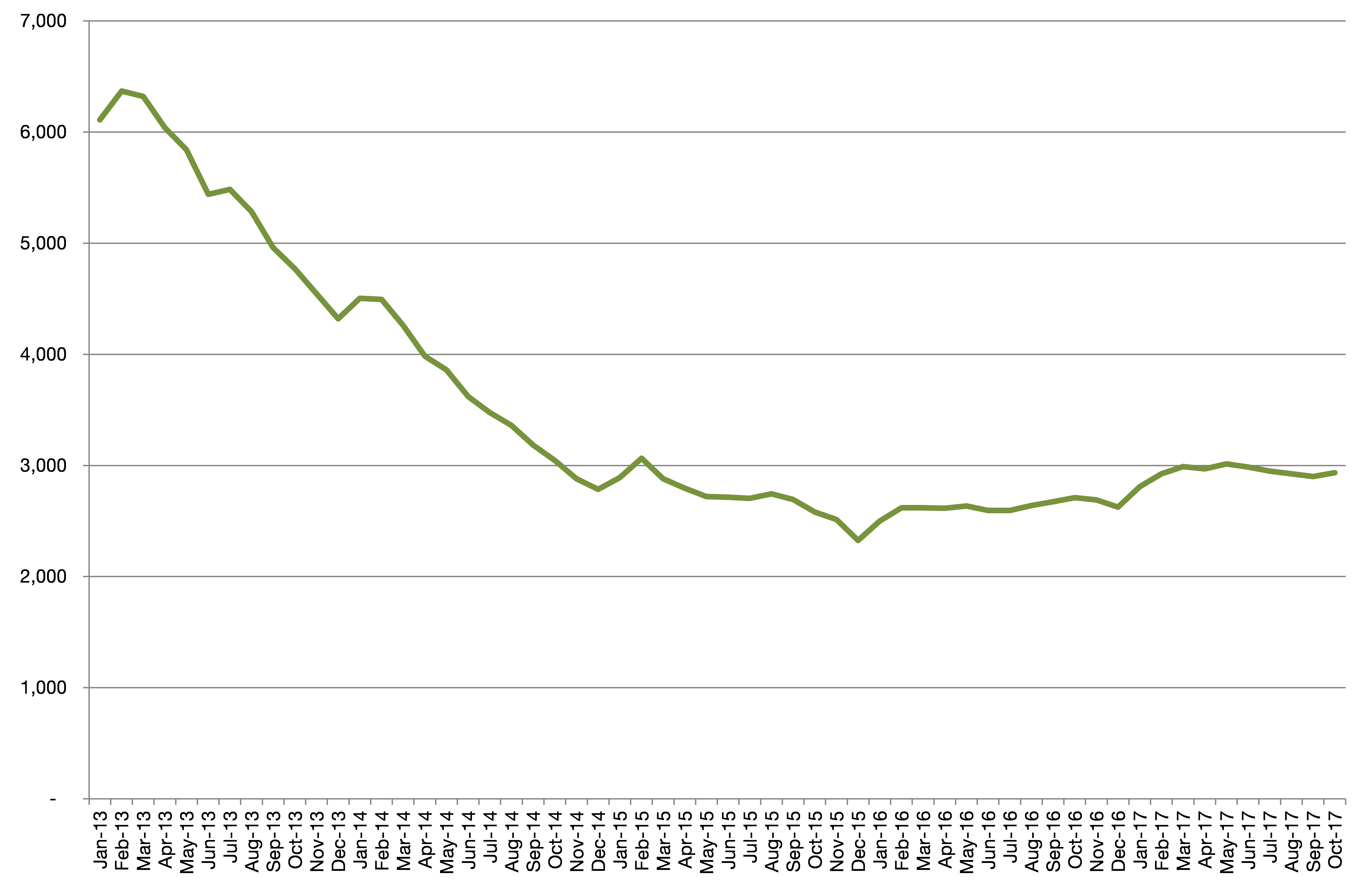 Chart 3: Chiltern’s claimant count over time, to October 2017