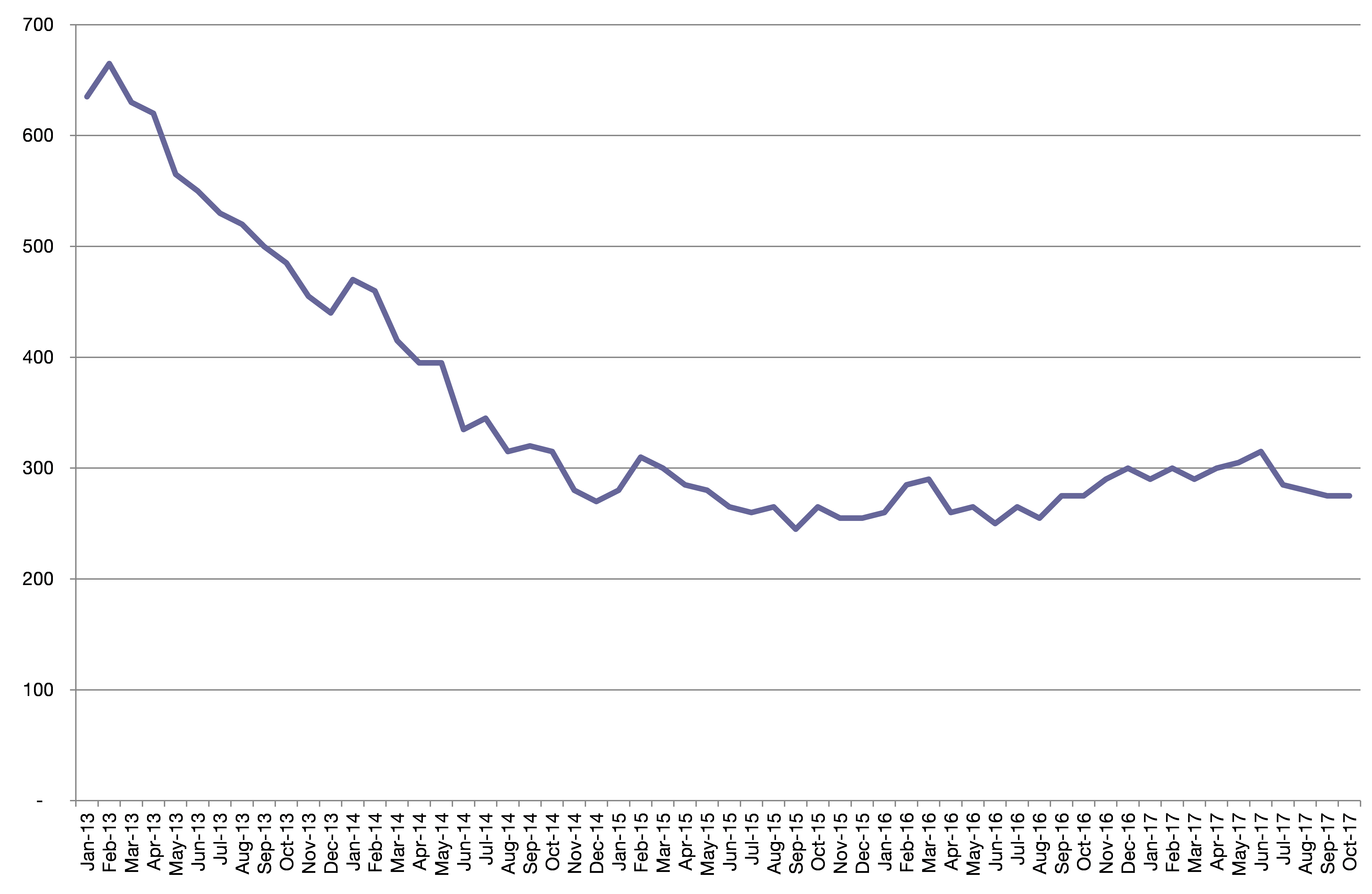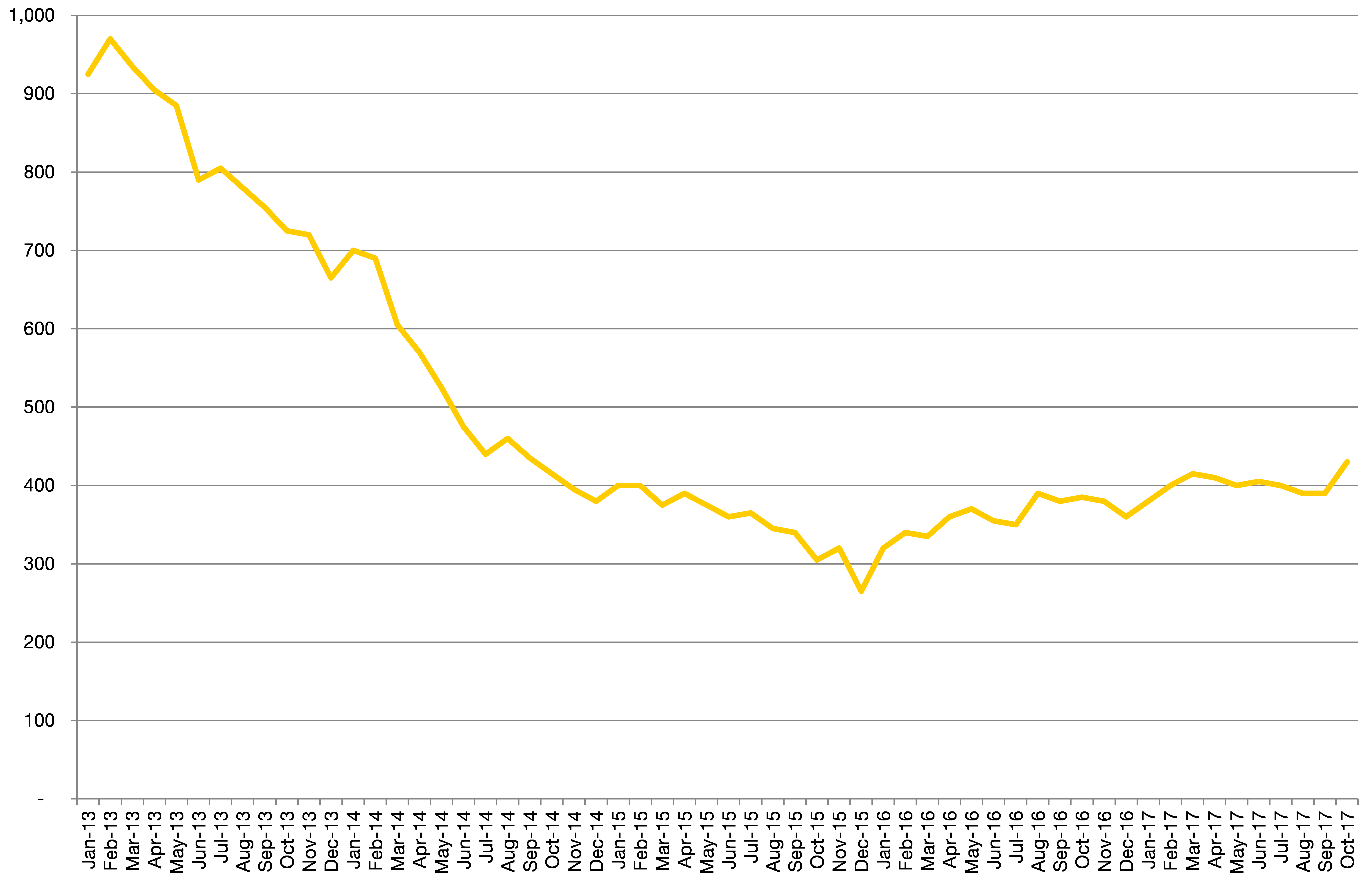 Chart 4: South Bucks’ claimant count over time, to October 2017