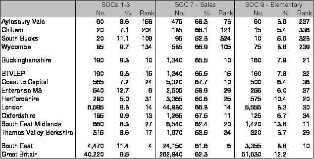 There were 5,322 advertised job openings in Buckinghamshire in October, 601 (12.7 per cent) more than in September, but 180 (3.3 per cent) fewer than in October 2016. At the national level, job openings have risen by 19.4 per cent over the last year. At 1.8, Buckinghamshire’s vacancies per claimant remains well above the national rate of 1.2.