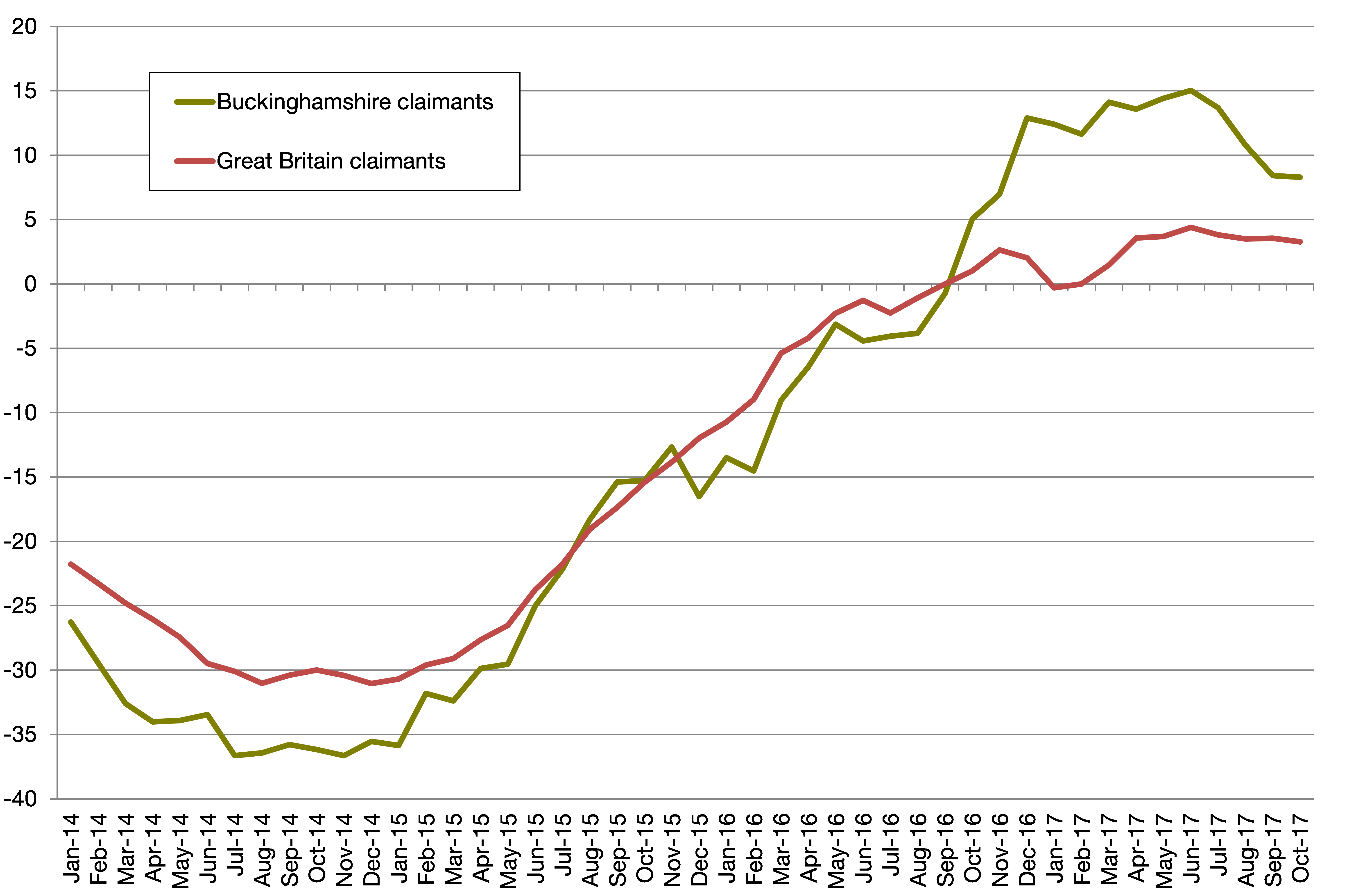 Chart 1: Buckinghamshire’s claimant count over time, to October 2017
