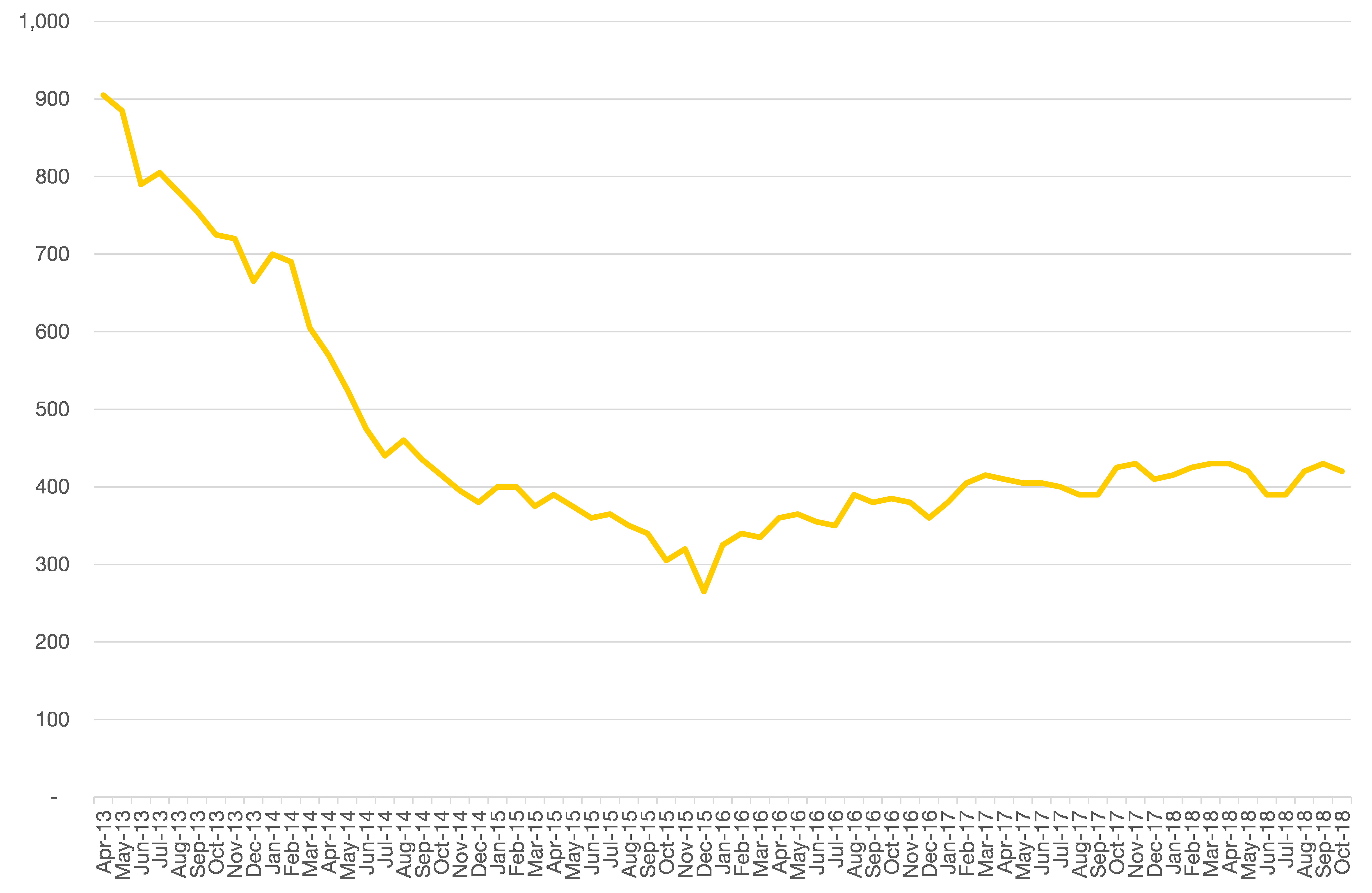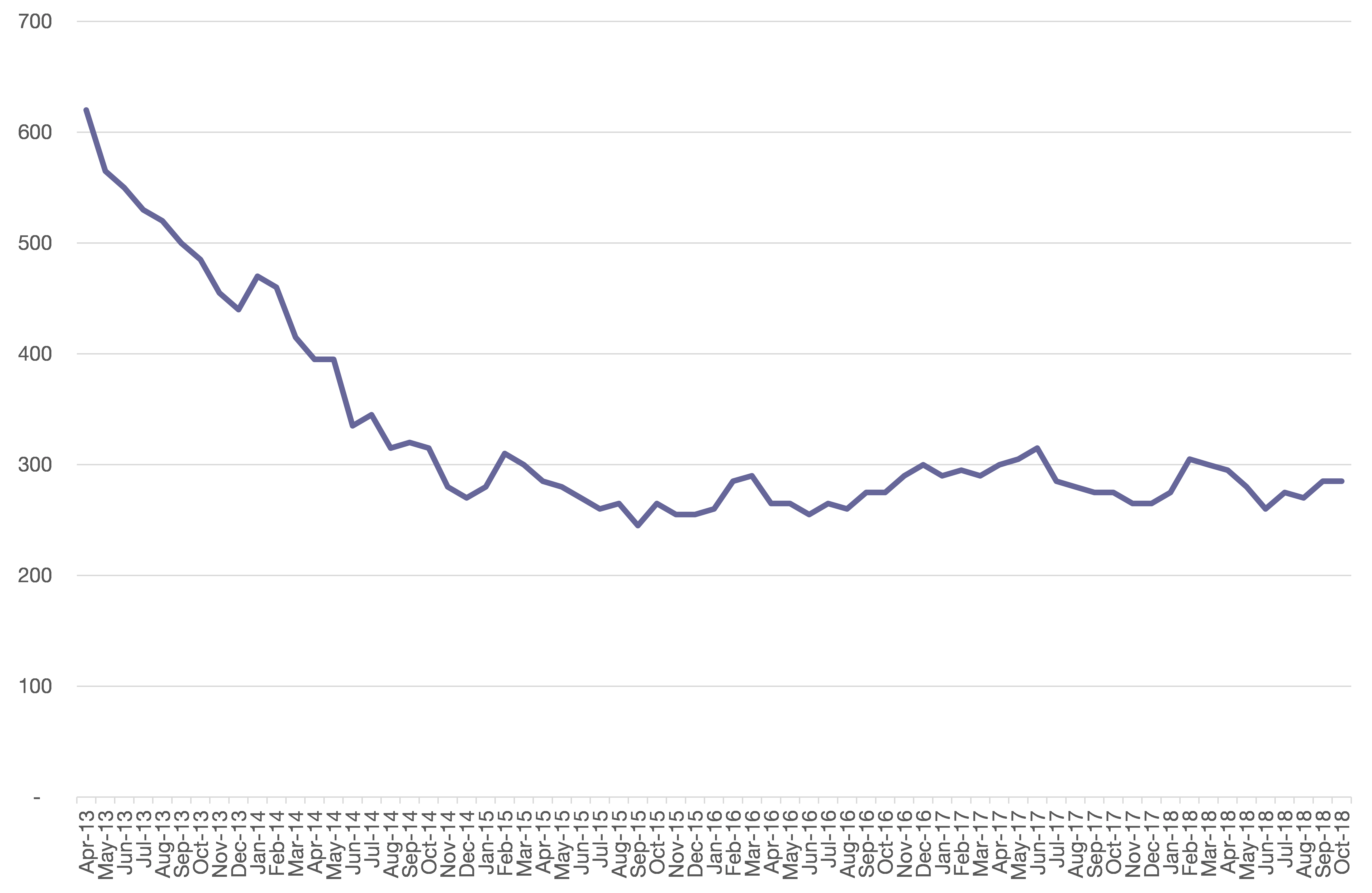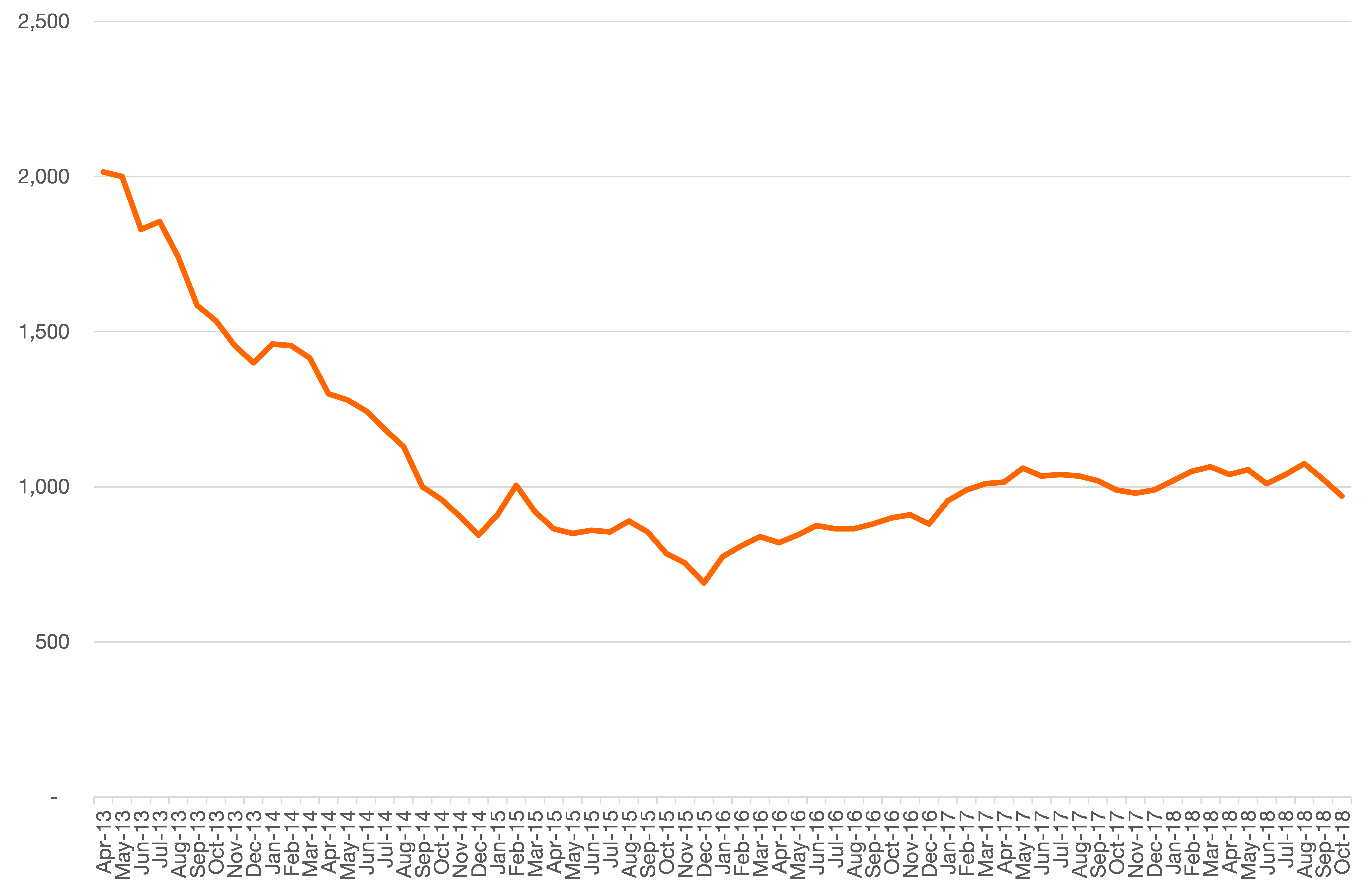 Chart 4: South Bucks’ claimant count over time, to October 2018