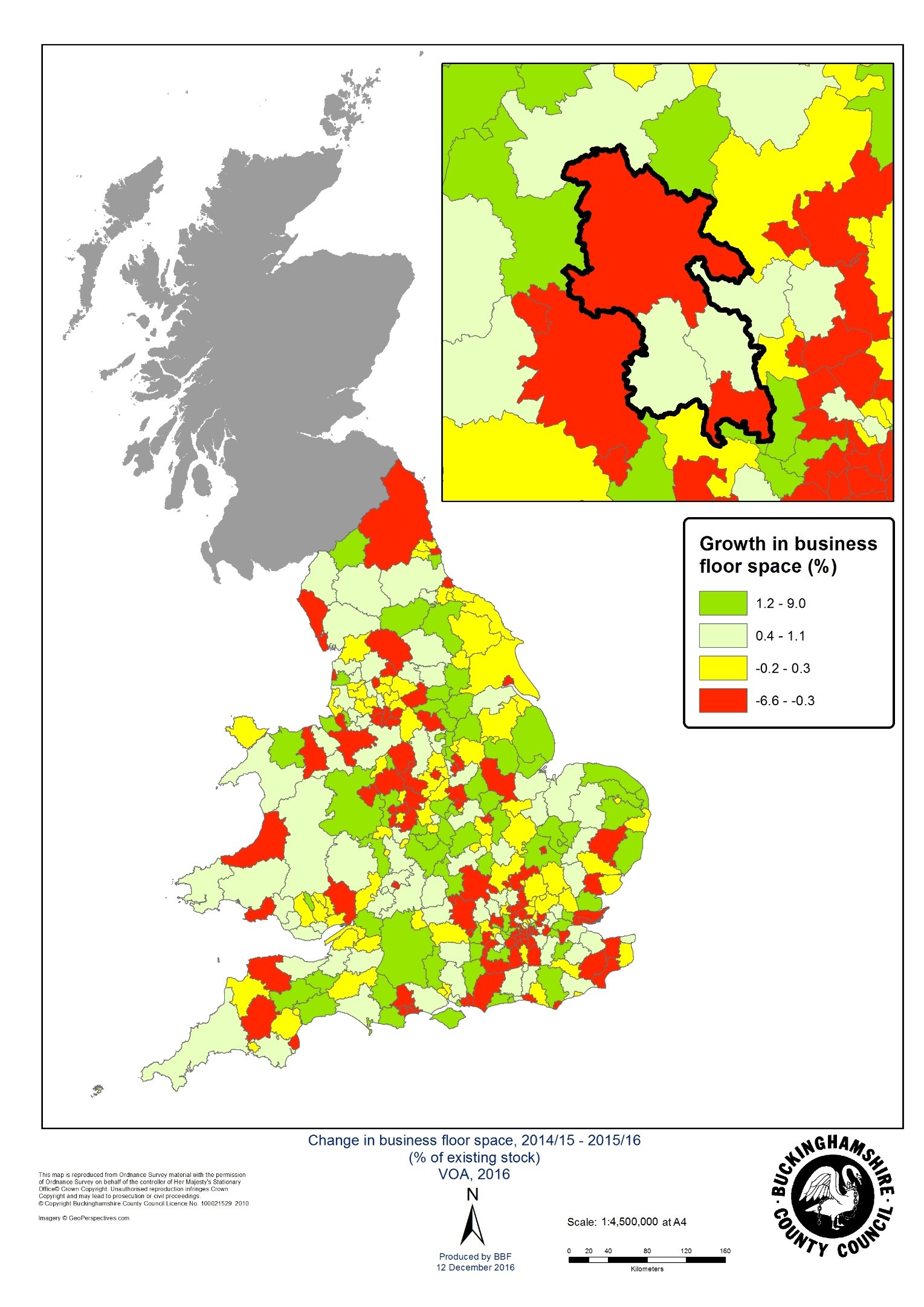 There were 14,690 rateable properties in Buckinghamshire in April 2016, providing 4,218,000m2 of business floorspace with a rateable value of £432.1m.