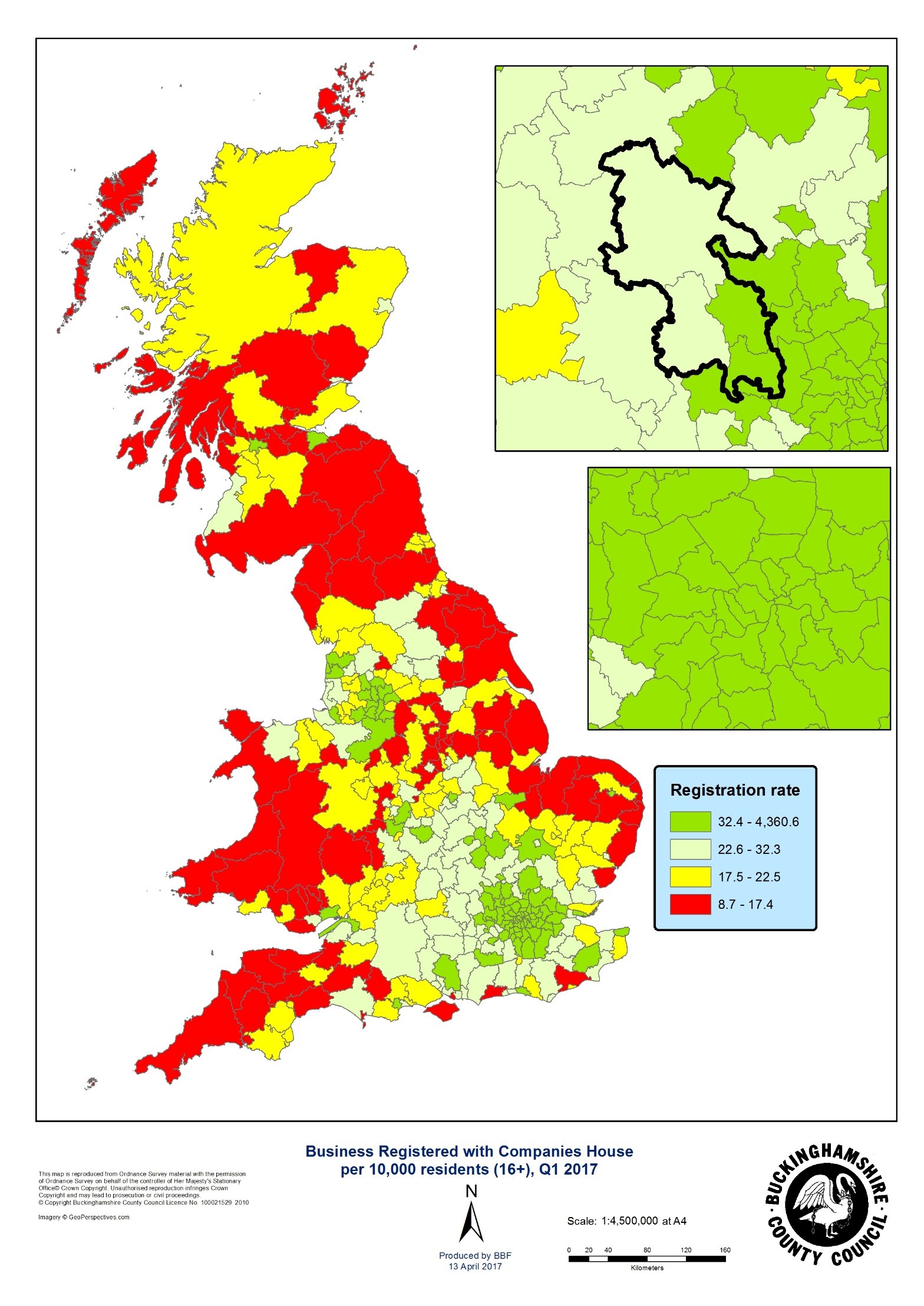 There were 1,368 businesses registered in Buckinghamshire in the first quarter of 2017 (January to March), according to Companies House.