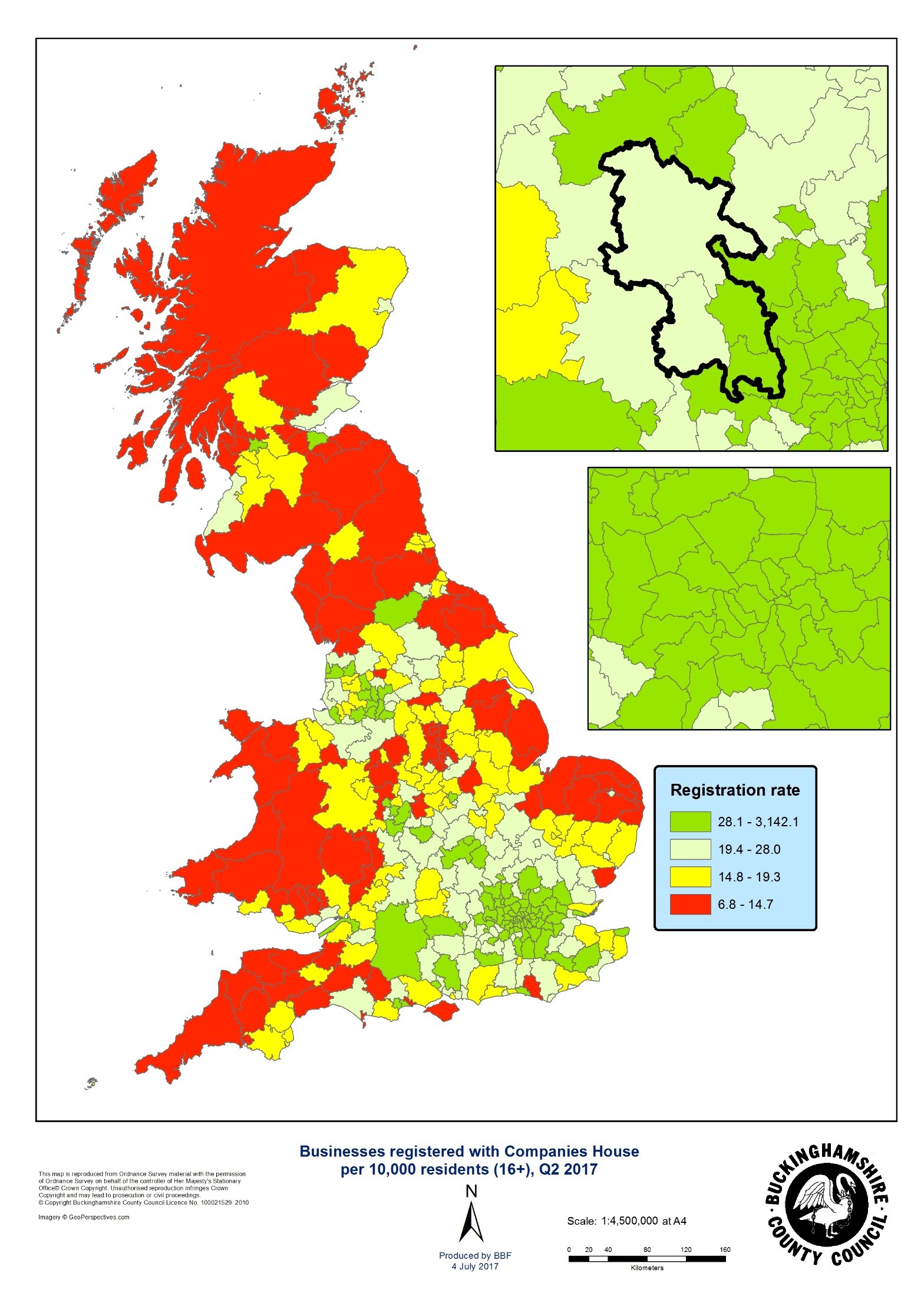 There were 1,288 businesses registered in Buckinghamshire in the second quarter of 2017 (April to June), according to Companies House.